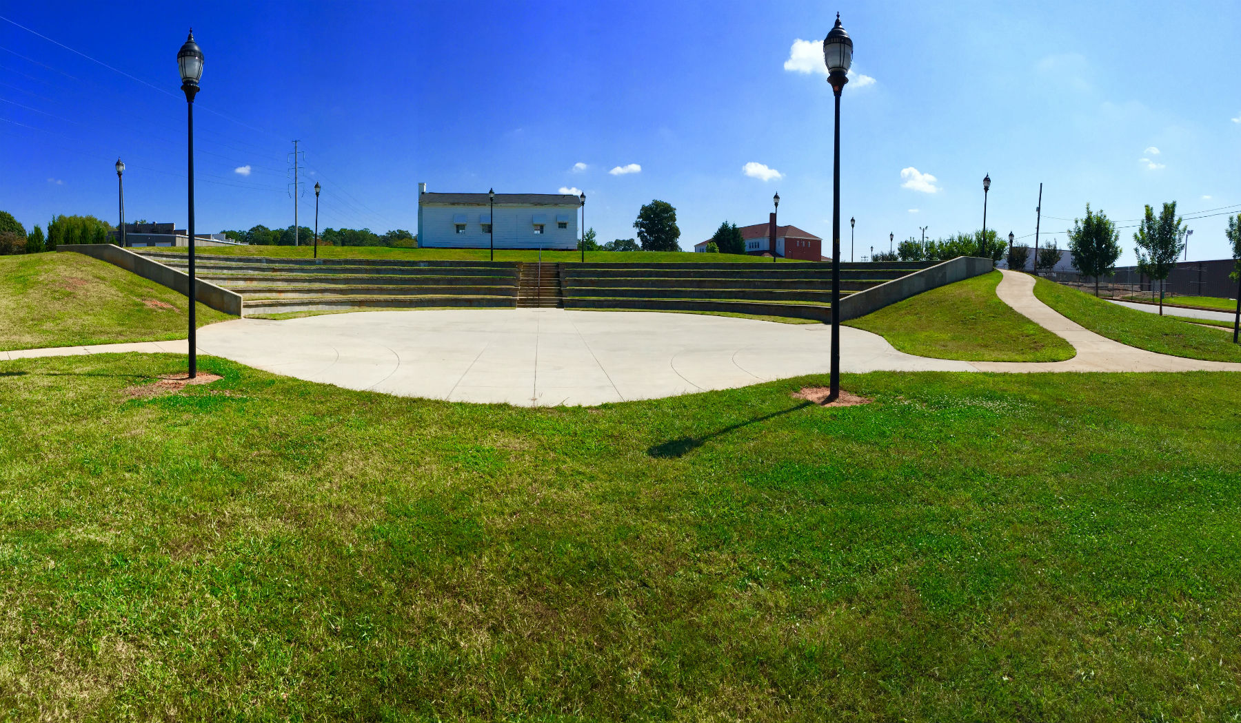 Our beautiful amphitheater is located just behind Town Hall on Community Street. The theatre seats 450 and has a 70 ft stage. We will be hosting an outdoor evening summer concert series at the theatre this summer as well as family movie nights. As you can see from the photos, you may sit in the amphitheater for events or if you prefer there is a large grassy area to bring your own chairs and blankets to enjoy the show!