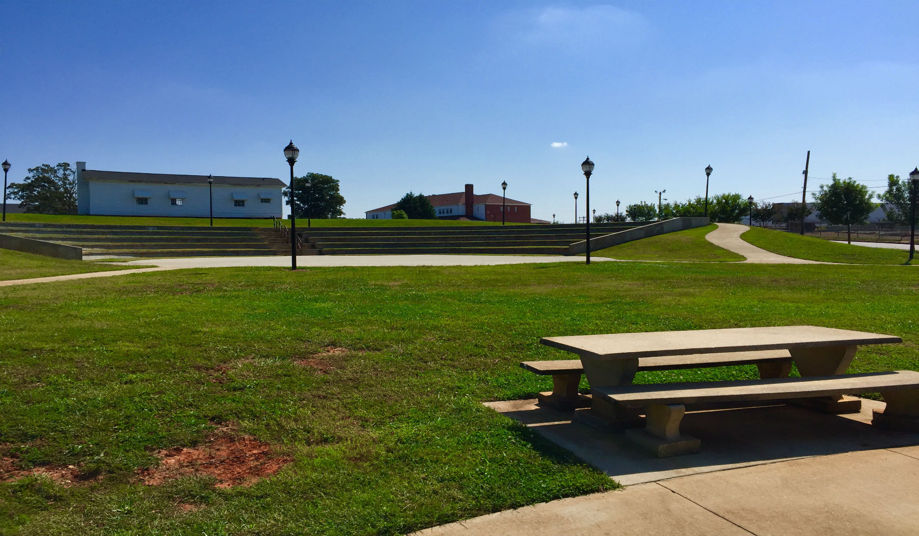 Our beautiful amphitheater is located just behind Town Hall on Community Street. The theatre seats 450 and has a 70 ft stage. We will be hosting an outdoor evening summer concert series at the theatre this summer as well as family movie nights. As you can see from the photos, you may sit in the amphitheater for events or if you prefer there is a large grassy area to bring your own chairs and blankets to enjoy the show!